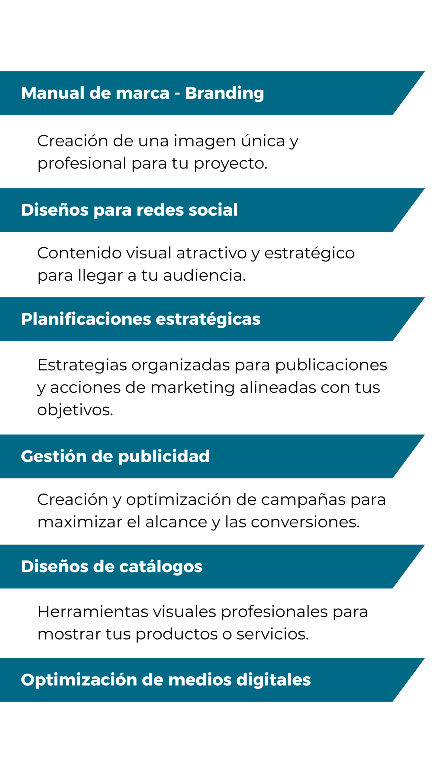 Un diseño visual atractivo y estrategias alineadas con tus objetivos harán que tu marca se destaque en el mercado, generando confianza y fidelidad en tus clientes.